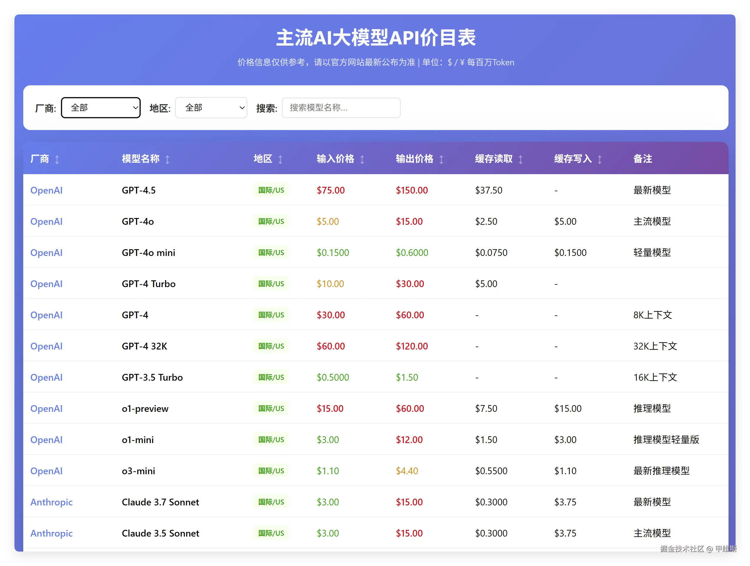 一个是让它们帮我汇总一个现在最新的主流大模型 API 的价目表。