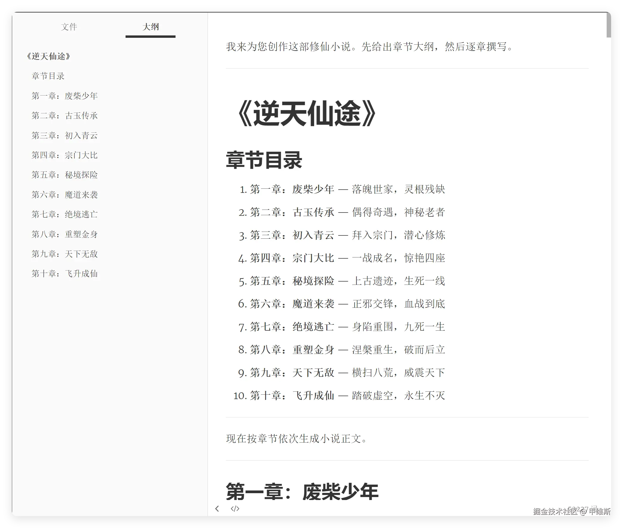 一个是写一篇 5 万字、10 个章节的修仙小说。