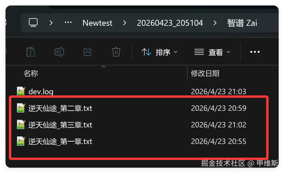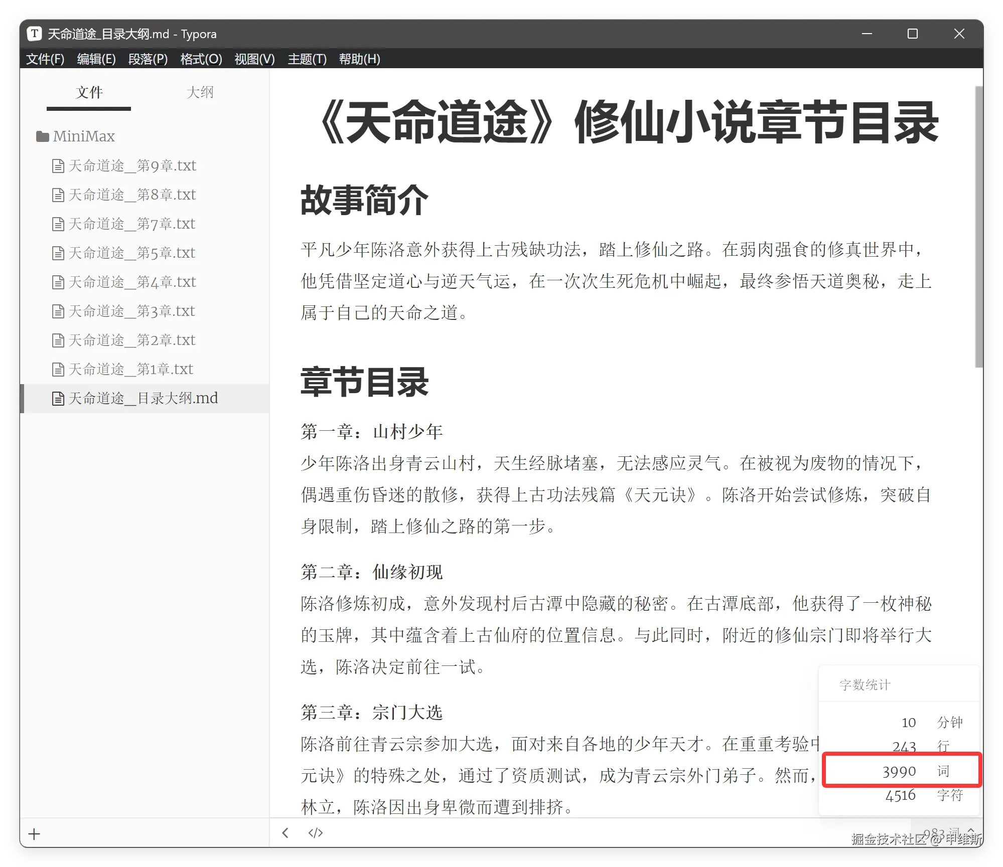 它写的小说叫《天命道途》,它是用 TXT 存储了不同的章节。