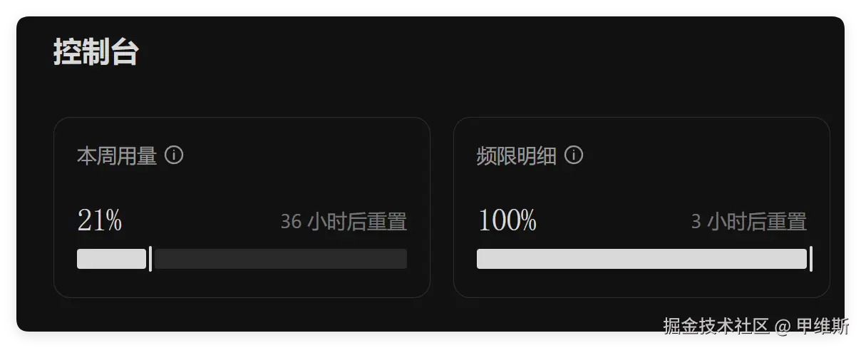 你们看周配额才消耗了 10%啊,5 小时配额基本都是满血状态,一般也就用到 10%~20%。