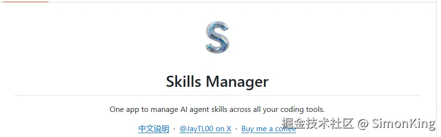 直到我发现了这个开源项目:Skills Manager。一个把 Skills 统一管理、一键同步到所有 AI 编程工具的桌面应用。