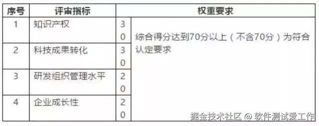 企业创新能力主要从知识产权、科技成果转化能力、研究开发组织管理水平、企业成长性等四项指标进行评价。各级指标均按整数打分,满分为100分,综合得分达到70分以上(不含70分)为符合认定要求。四项指标分值结构详见下表: