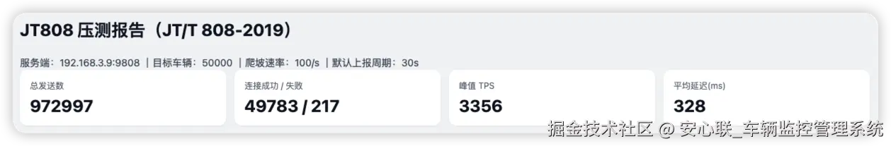 实测验证|安心联 JT/T 808 车载监控系统,单机支撑 5 万辆车高并发稳定接入