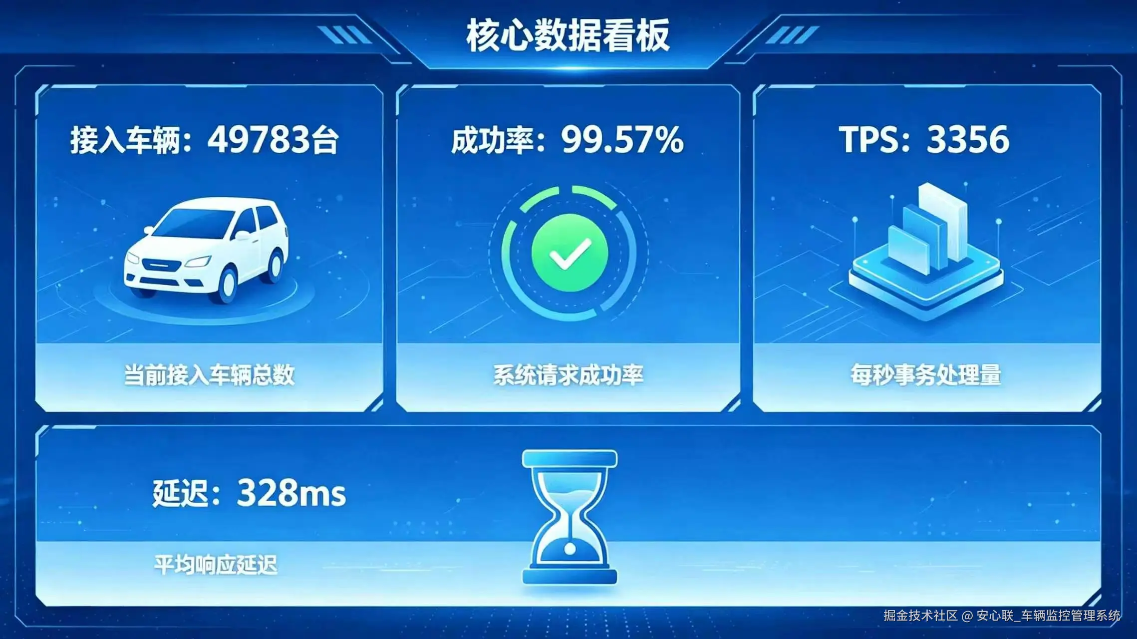 - 长连接接入情况:成功接入车辆 49783 台,接入失败仅 217 次,整体接入成功率高达 99.57%,无限逼近预设 5 万终端接入目标
