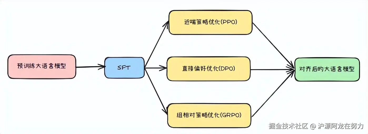 PPO | 稳重老教练 | 需要单独的奖励模型 | 最稳定、效果最好 | 训练慢、耗资源 | 大公司、追求极致 |