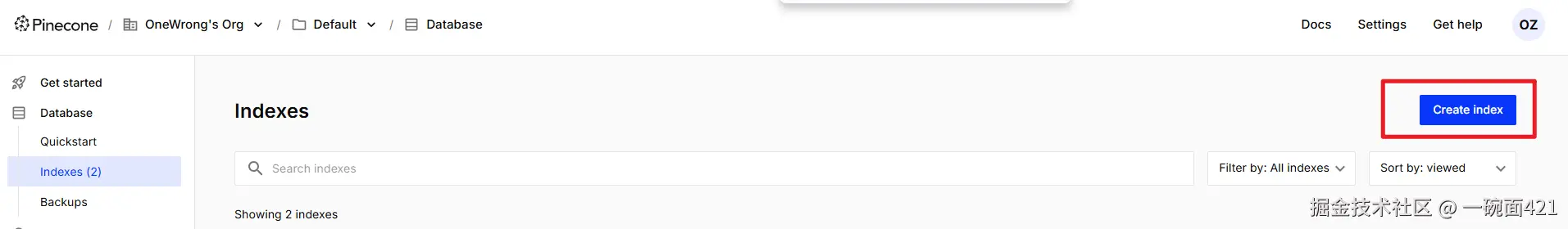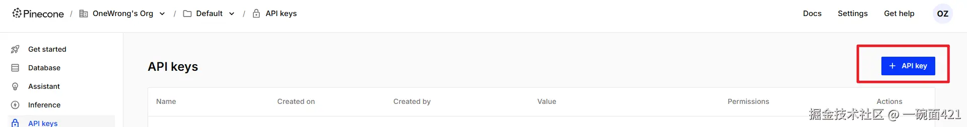 这里我选择的是Pinecone(一个开箱即用的云向量数据库),需要去官网(app.pinecone.io/)注册一个账号