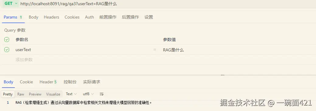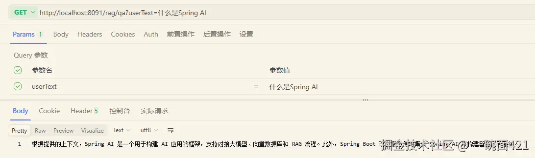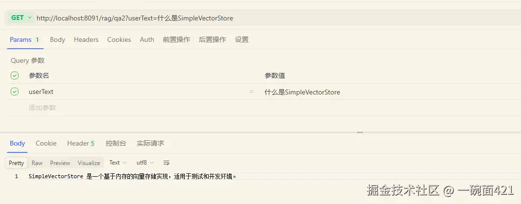new Document("Spring AI 是一个用于构建 AI 应用的框架,支持对接大模型、向量数据库和RAG流程。"),
