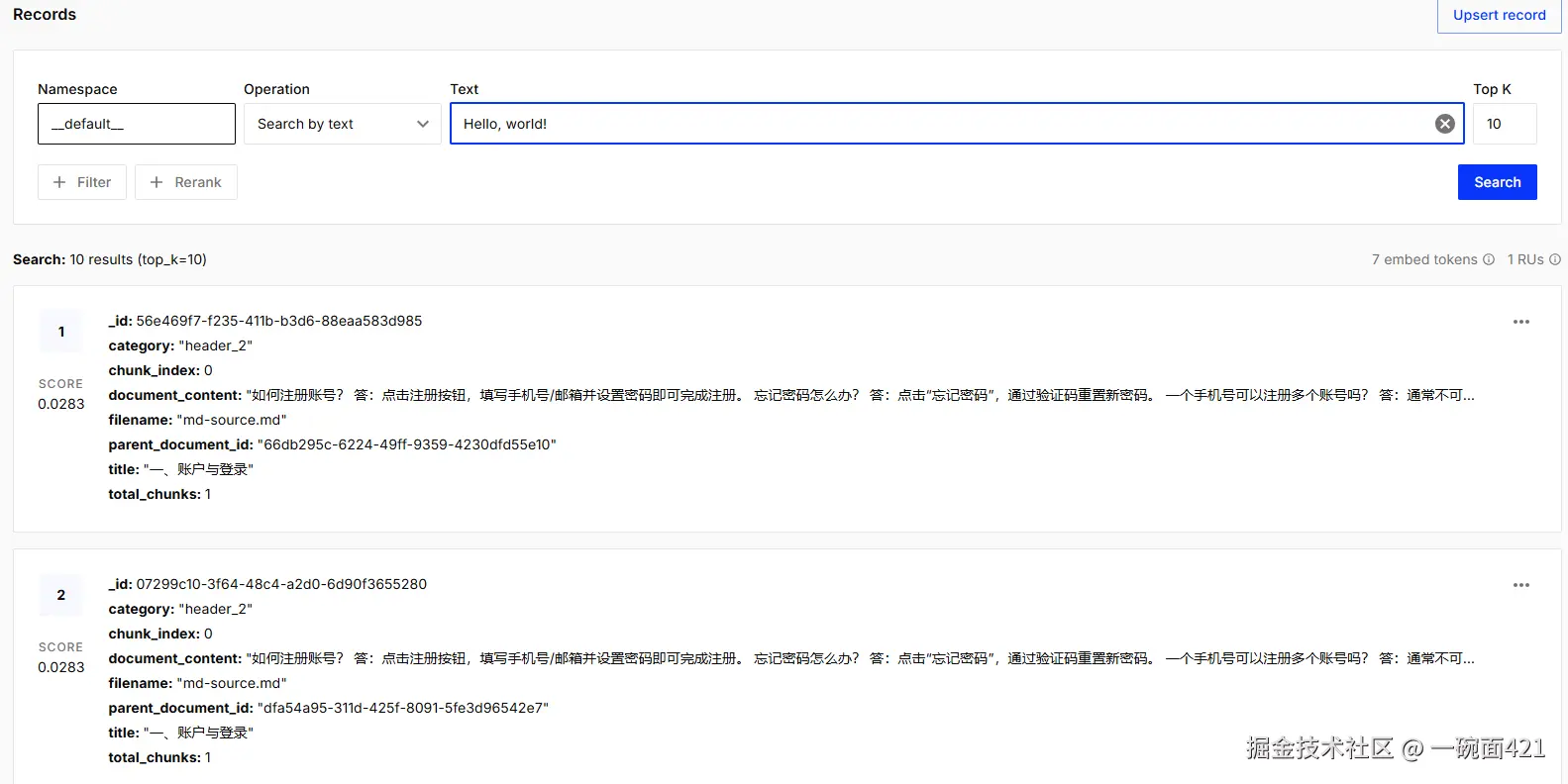 主体过程如下:Markdown → Document → 切 chunk → embedding → 存向量库(Pinecone)