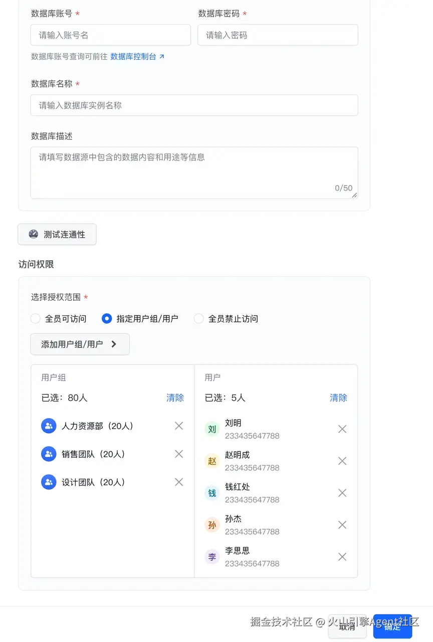 示例二:支持实例级别权限配置(预计 2026 年 Q2 支持库 / 表 / 列粒度的权限配置)