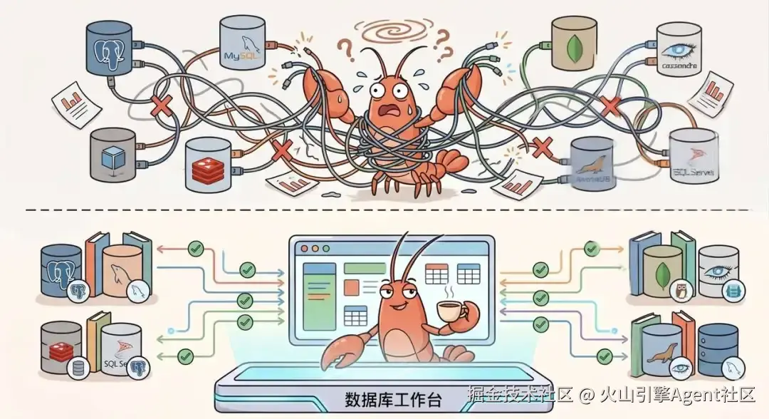 - 数据孤岛难打通:企业核心数据散落在不同的云、MySQL, PostgreSQL 等数据库中,“龙虾”安全、高效地跨云、跨库连接数据,成为一大难题。