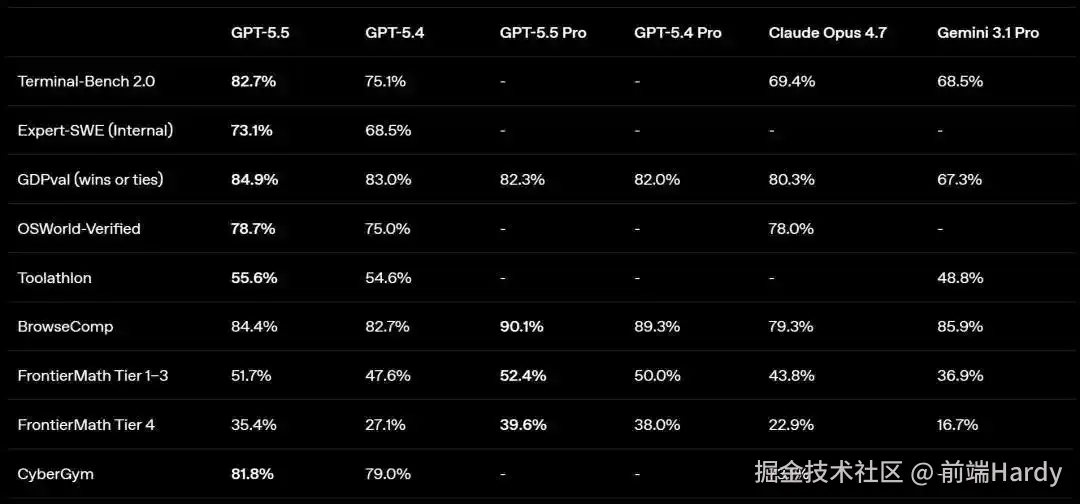 二、硬核对比:GPT‑5.5 全面碾压上代与竞品