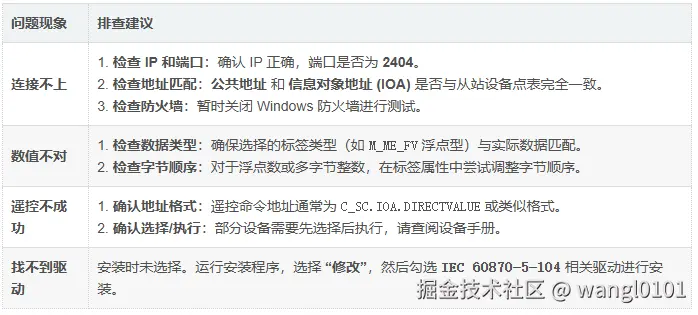 传送原因 (COT) 和 发起方地址 (Originator Address):务必与你的 104 从站设备(如保护装置、RTU)中的配置保持一致。