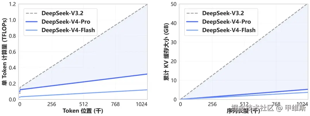 这种机制在 token 维度进行压缩,结合 DSA 稀疏注意力,实现了全球领先的长上下文能力,并且相比于传统方法大幅降低了对计算和显存的需求。
