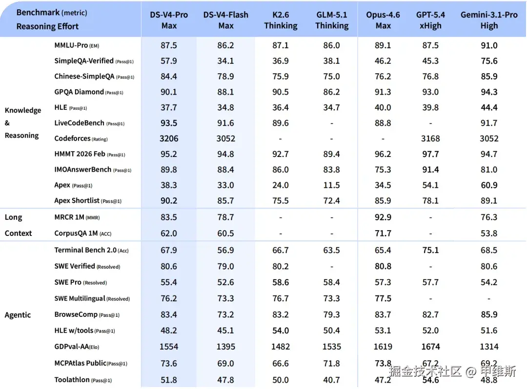 DeepSeek V4 的基准数据还比较全面的,有些模型发布的时候基准很少。
