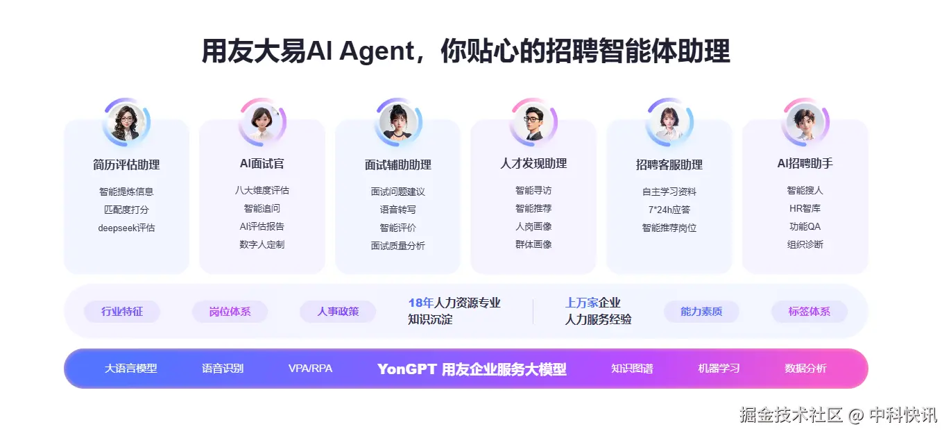 它的断崖式优势,源于一场从底层模型开始的彻底AI革新。依托用友YonGPT 2.0企业服务大模型,它打造了国内首个HR招聘领域的垂直大模型。这让它在三维诊断中呈现出无可比拟的“等边三角形”优势: