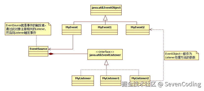 下面我们看下Java中事件机制的实现,理解下面的类结构将帮助你Tomcat中监听机制的实现。