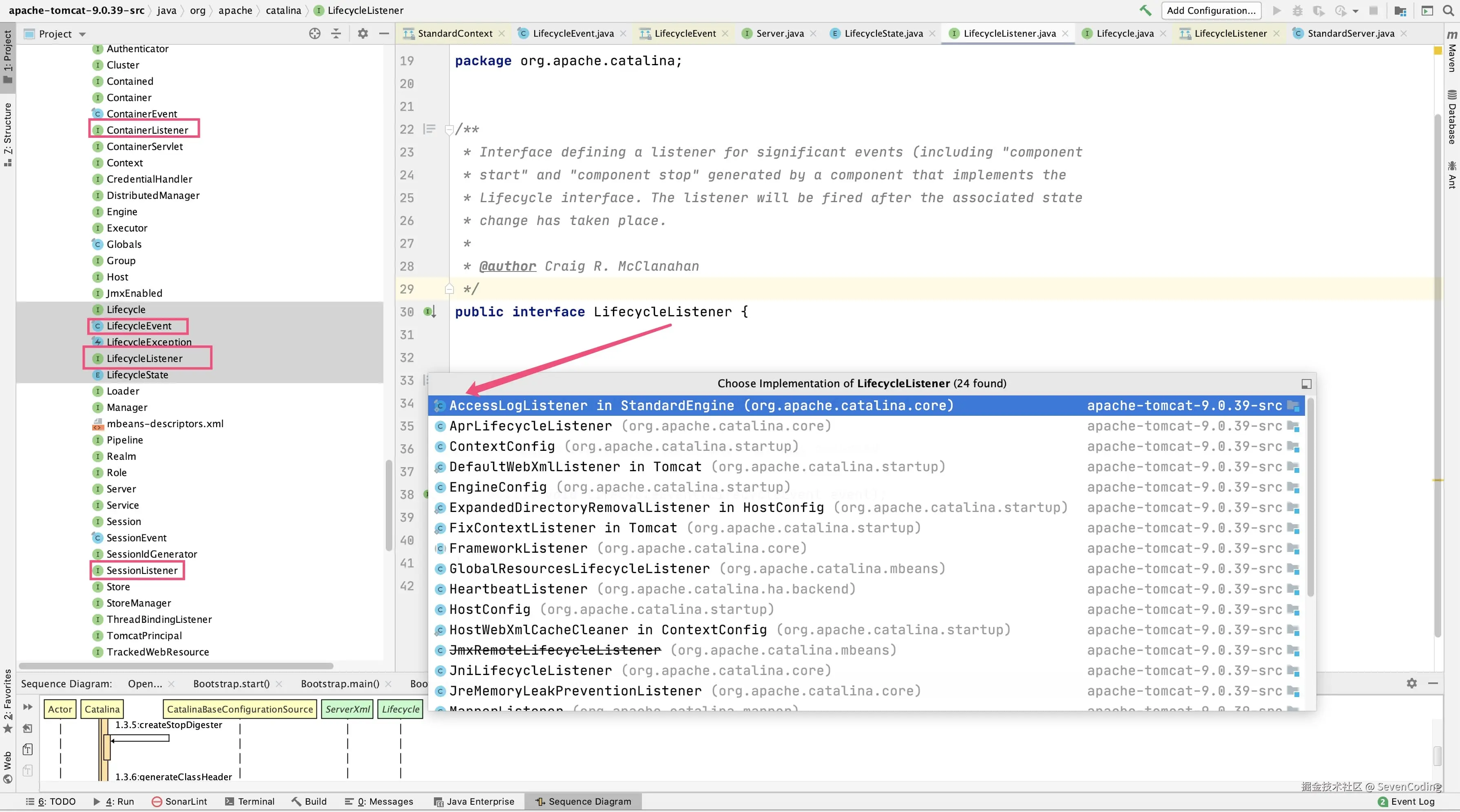 基于上面的事件监听的代码结构,你就能知道Tomcat中事件监听的类结构了。