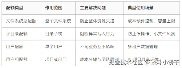 在分布式存储环境中,存储资源通常由多个用户、项目和业务共享使用。如果缺乏有效的约束机制,单一主体的异常写入或误操作,可能迅速消耗大量空间或 inode,进而影响系统稳定性与成本控制。配额管理正是为共享环境建立可预测资源边界的重要手段。