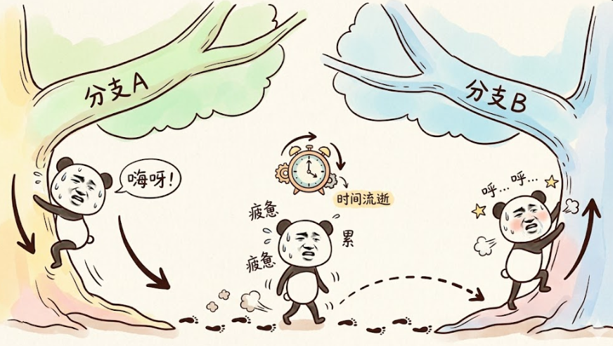 鱼皮:正常情况下,一个项目的 Git 仓库只有一个工作目录,也就是说你同一时间只能在一个分支上干活。想切换分支,就得先保存手头的代码,从当前分支爬下来,然后再爬到另一个分支上开始干活,来回折腾。