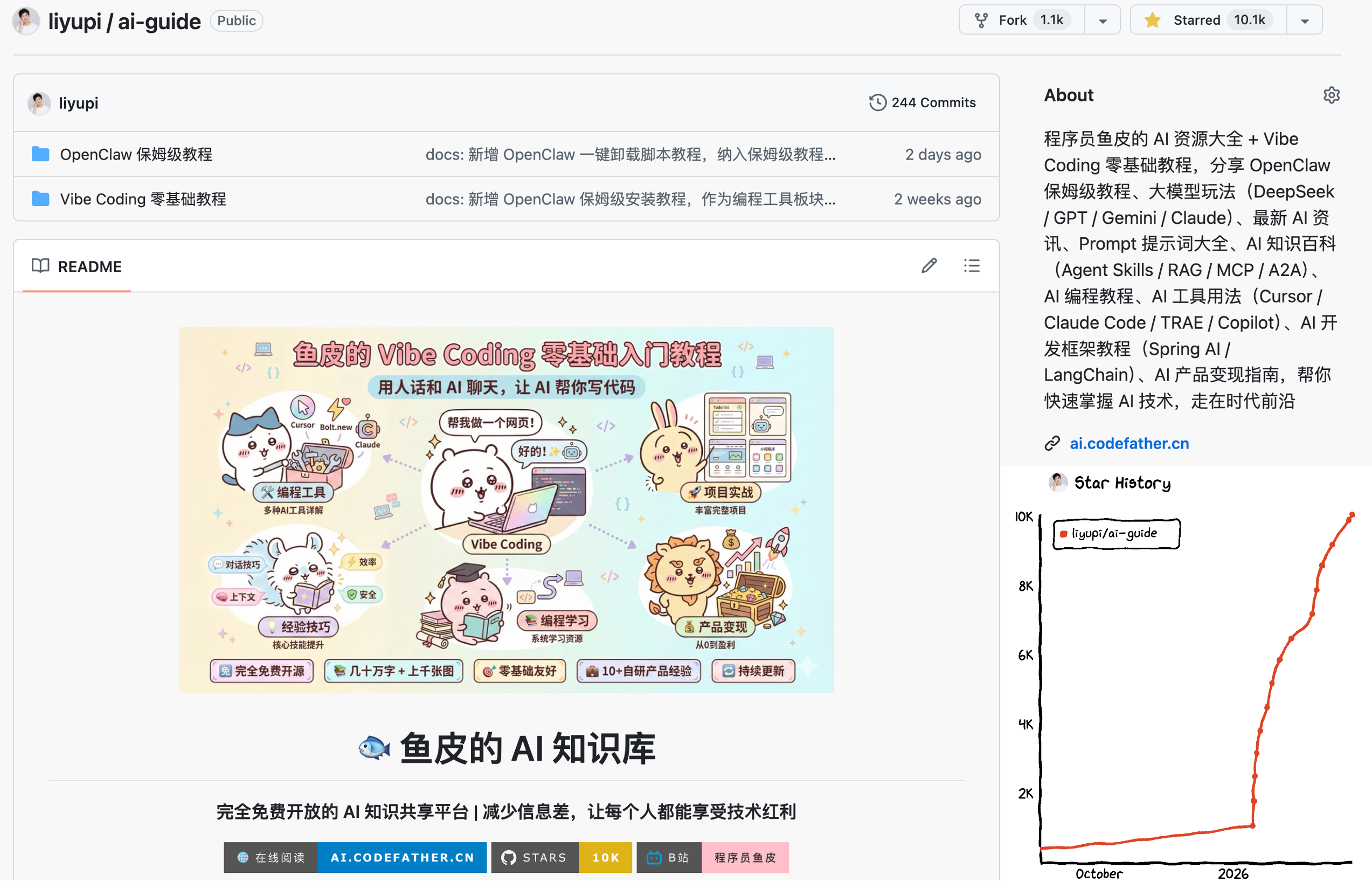 鱼皮:不错,多了解一些编程技术和工具能让你的 AI 开发效率翻倍。如果你想系统学习 AI 编程,可以看看我免费开源的 《AI 编程零基础教程》,从入门到实战一条龙讲解。点个收藏关注不迷路~
