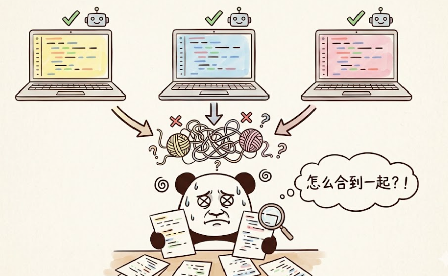 结果你发现,AI 们在执行过程中修改了同一个文件,相互覆盖,导致代码全乱套了!