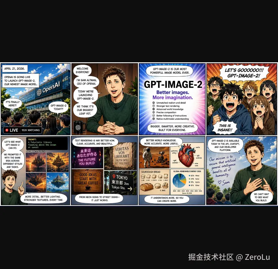 创作一部关于 GPT-Image-2 今天发布的八格漫画