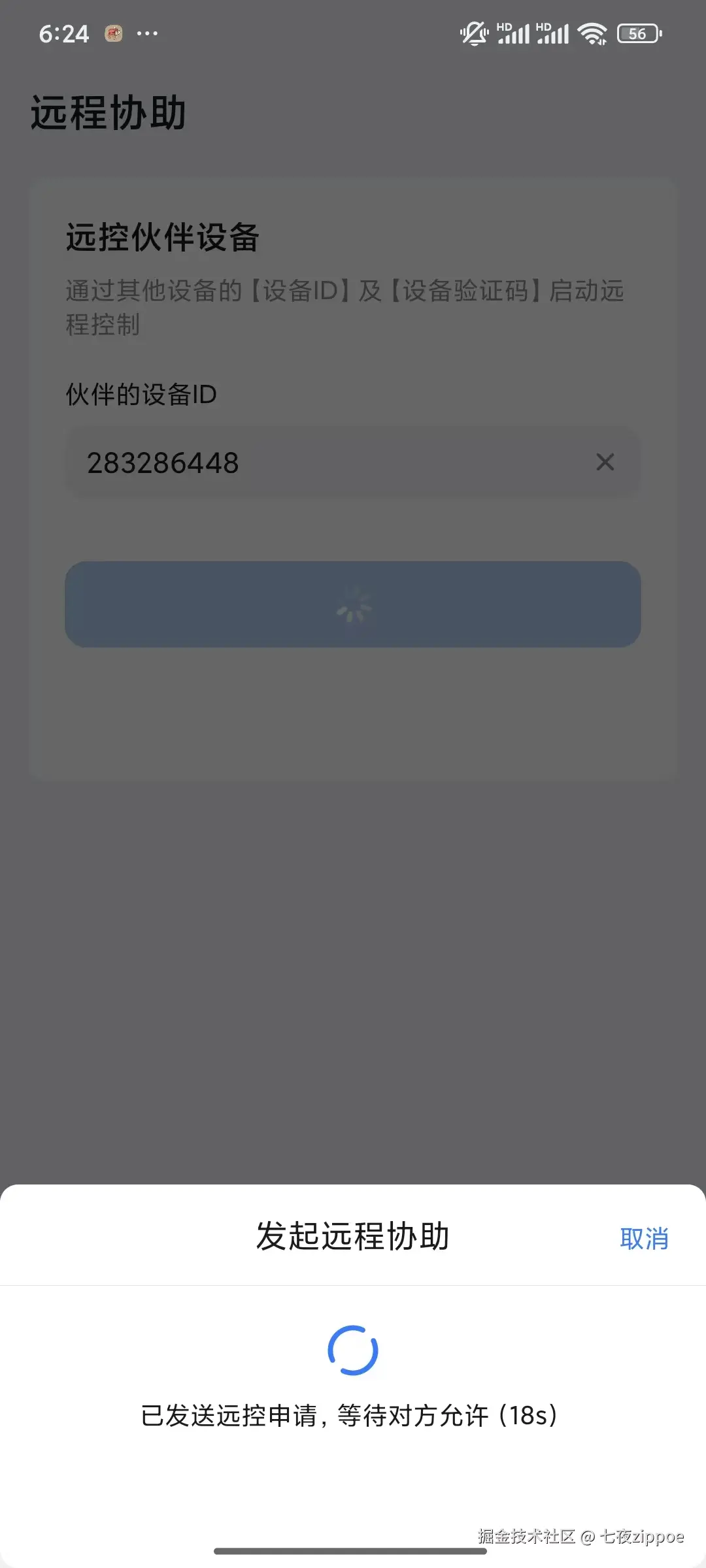 手机在远程协助页面输入设备ID,直接点击“开始远控”,即可发起远控申请。如下图