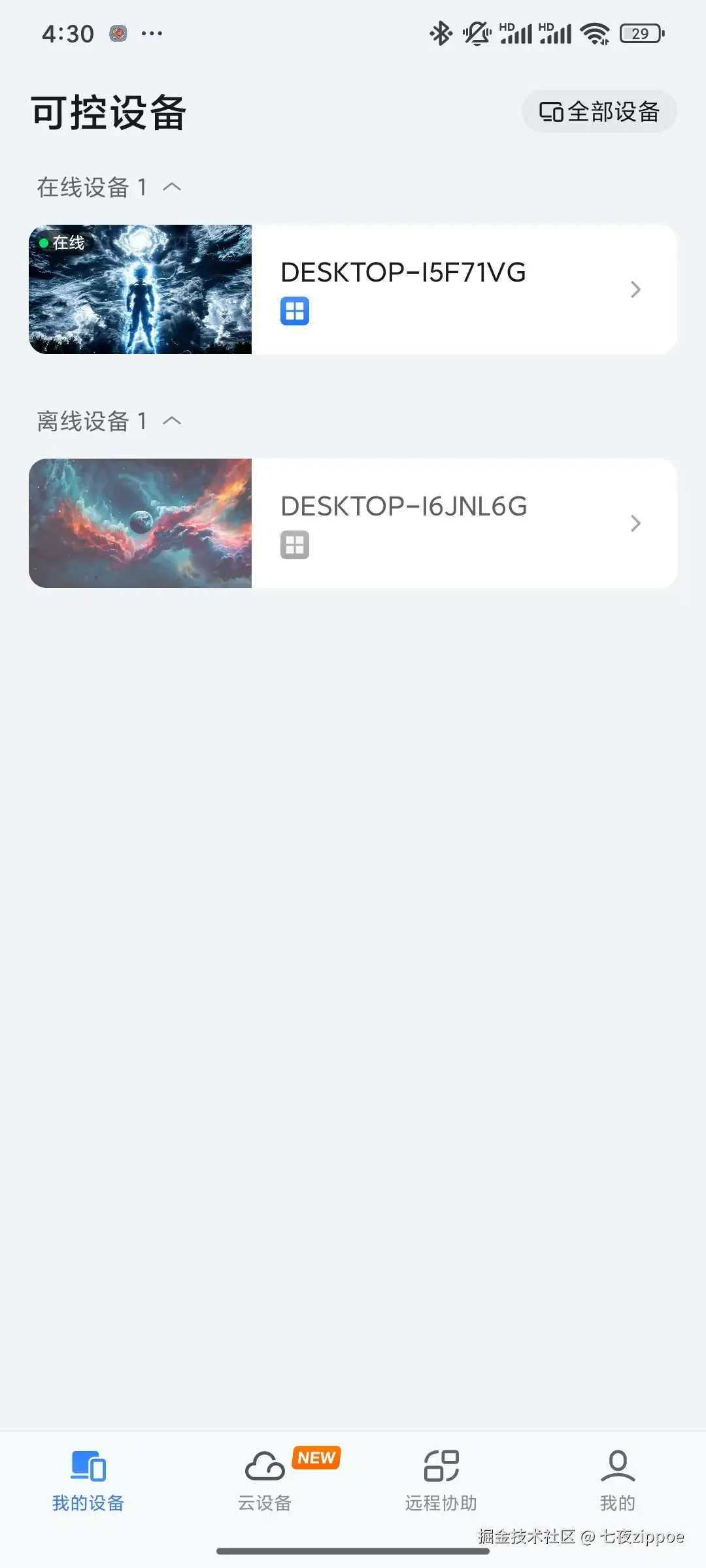 移动端(安卓/iOS)界面延续简洁风格,首页直接展示“我的设备”“远程协助”“远程开机”等核心入口