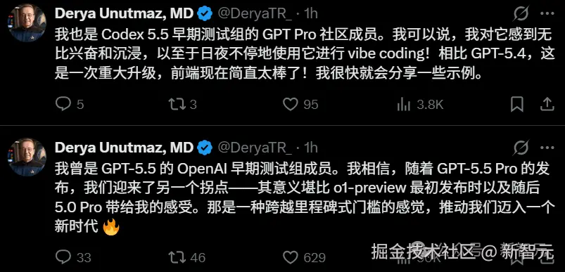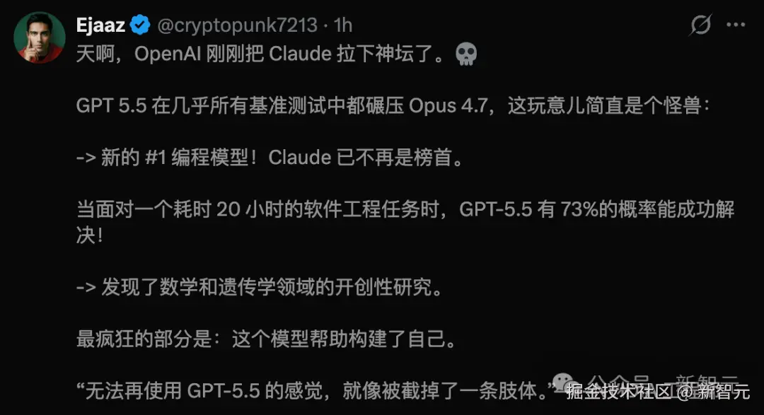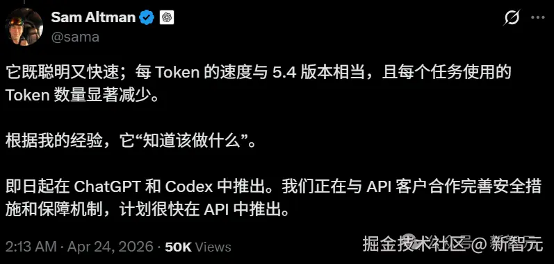 奥特曼忍不住大加赞赏,「GPT-5.5 既聪明又快速」。