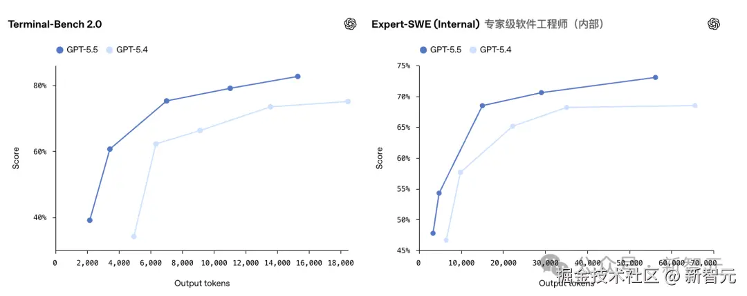 OpenAI 给出的解释是 token 效率提升。同样的 Codex 任务,GPT-5.5 用的 token 比 GPT-5.4 明显更少。