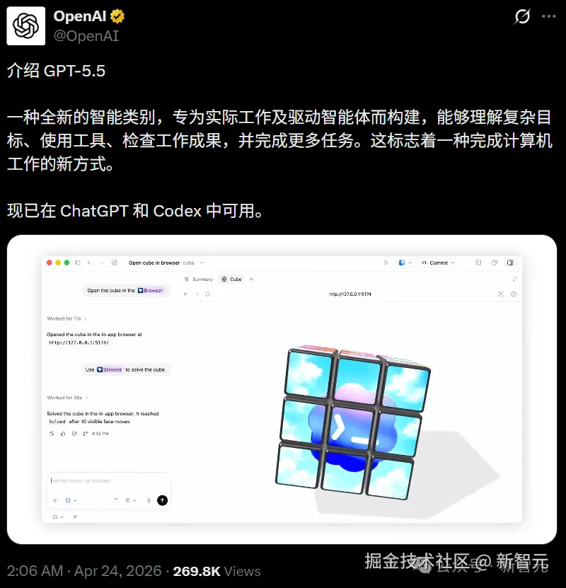 今天起,GPT-5.5 在 ChatGPT、Codex 中正式上线。