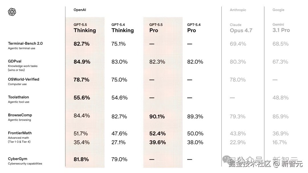 最值得看的是,GPT-5.5 在各项基准测试中:全榜第一!
