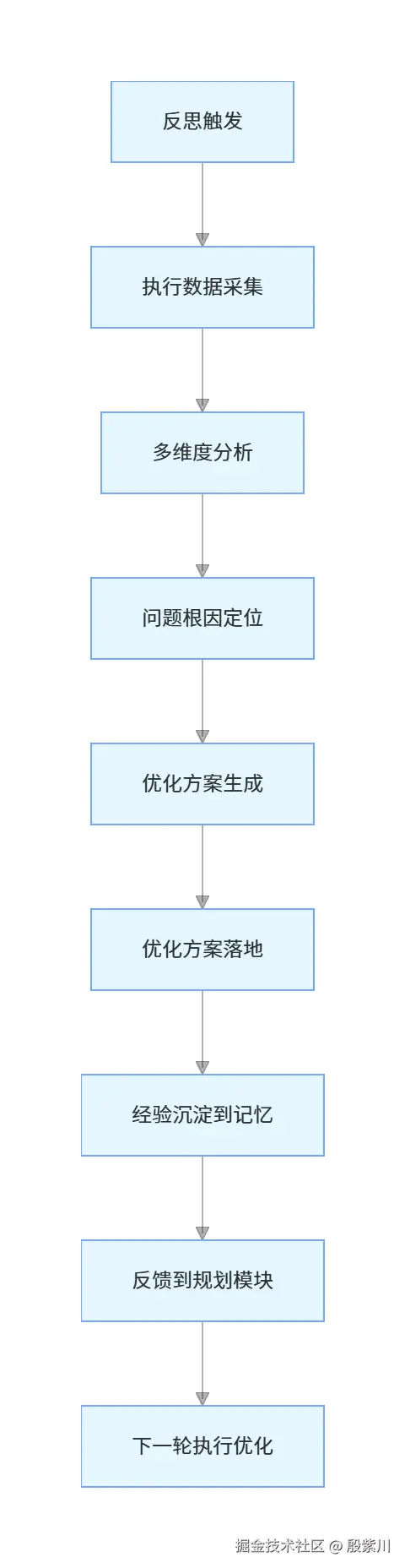 - 每一步动作执行完成后,反思模块会根据执行结果,判断是否需要触发单步反思,分析执行过程中的问题,生成优化方案,沉淀经验到记忆模块,同时反馈给规划模块,优化后续的执行计划。