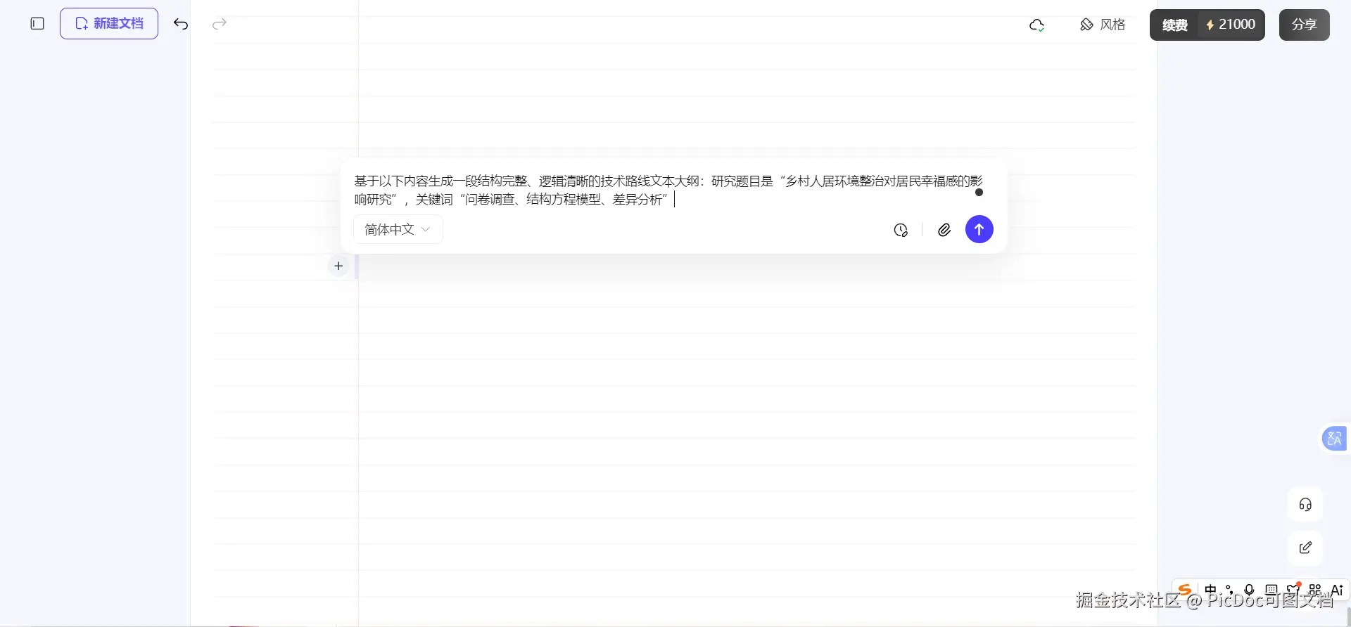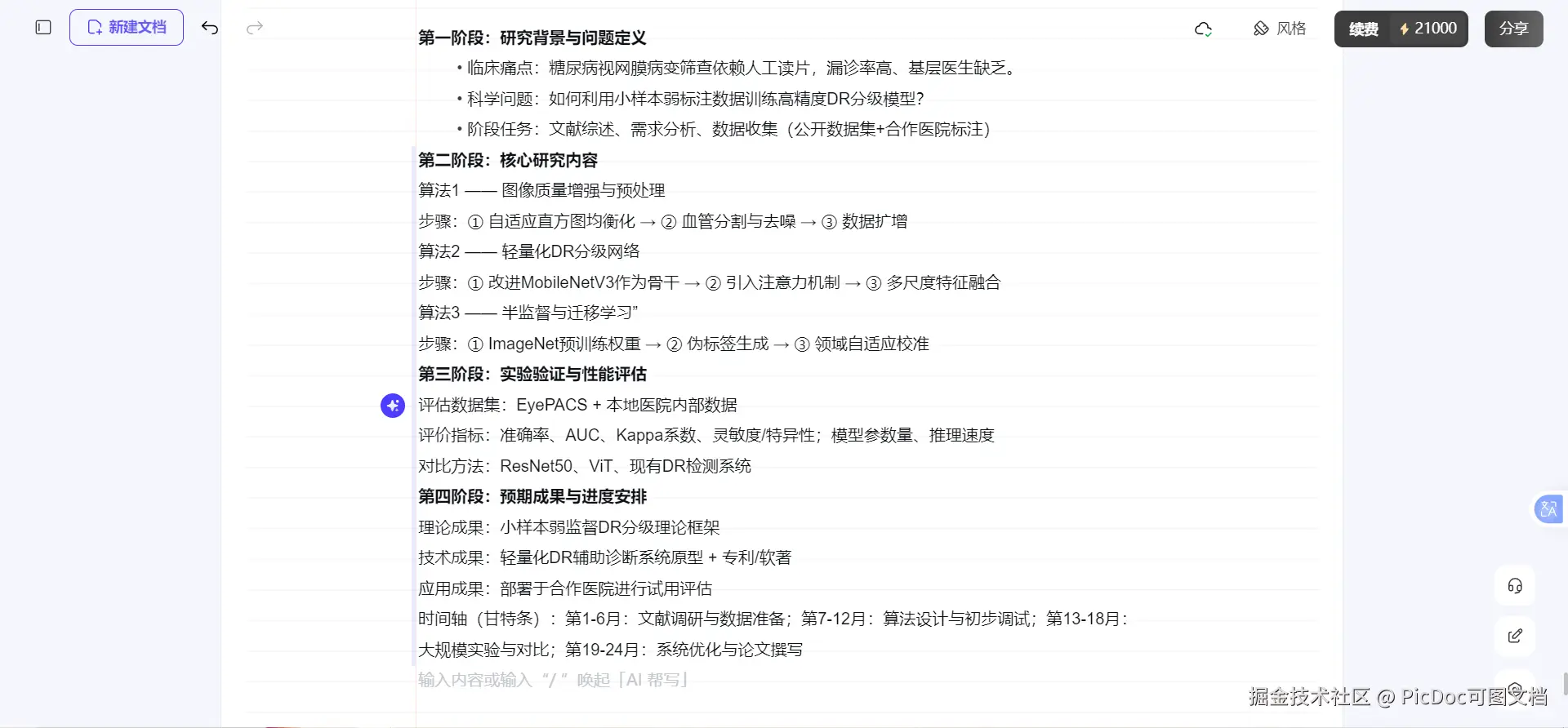 PicDoc的生图逻辑是:先有内容,后有图。你不需要会排版,只需要把研究思路整理成文字。