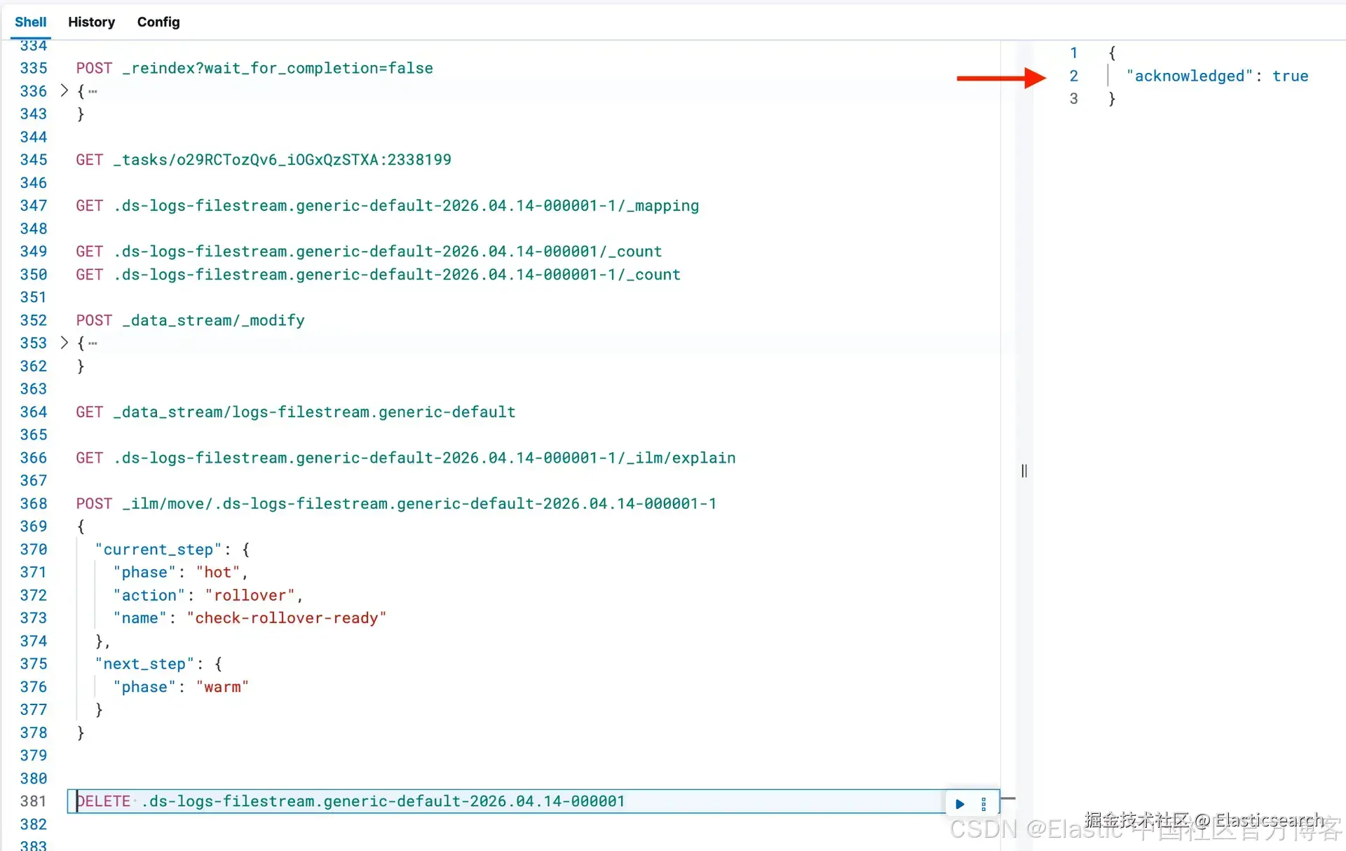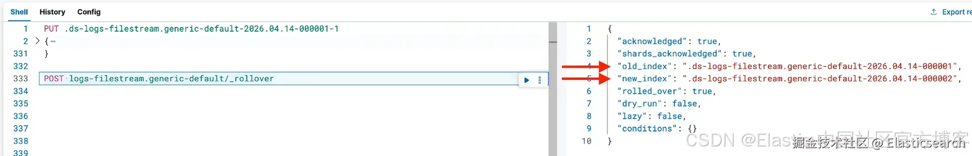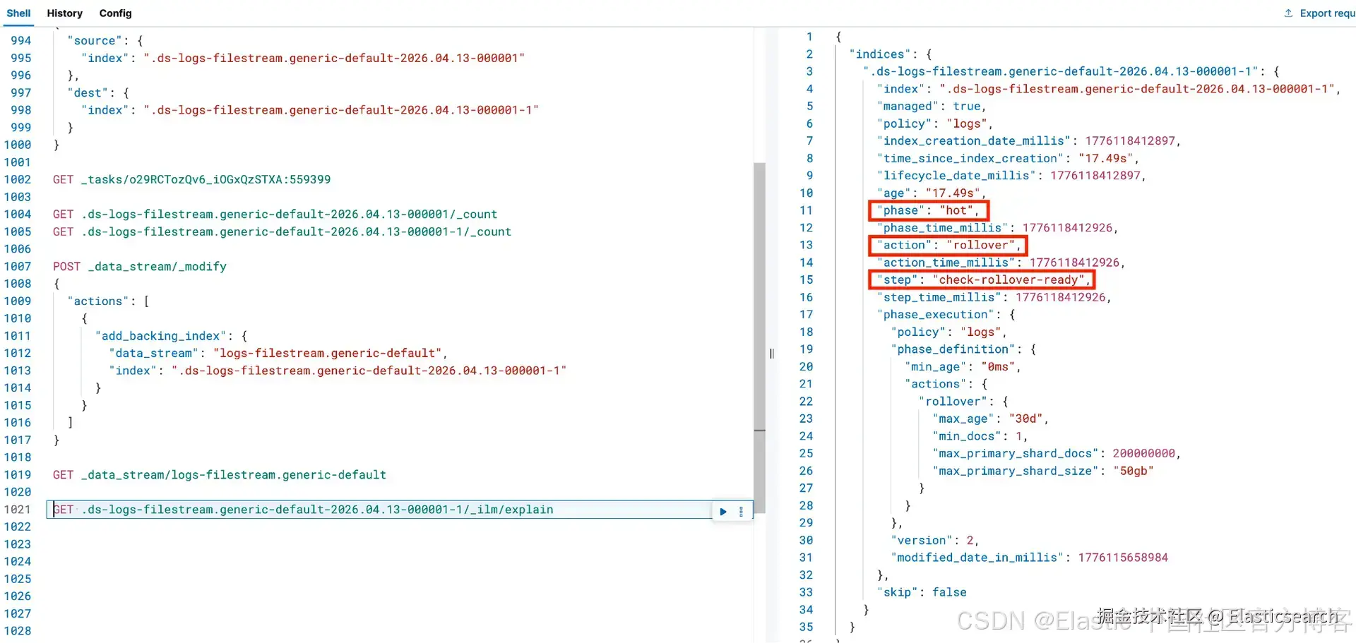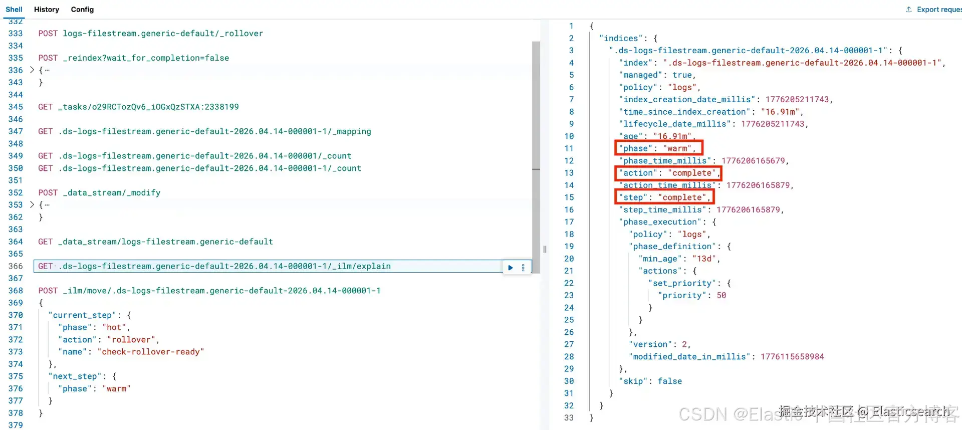 `GET .ds-logs-filestream.generic-default-2026.04.14-000001-1/_ilm/explain`AI写代码