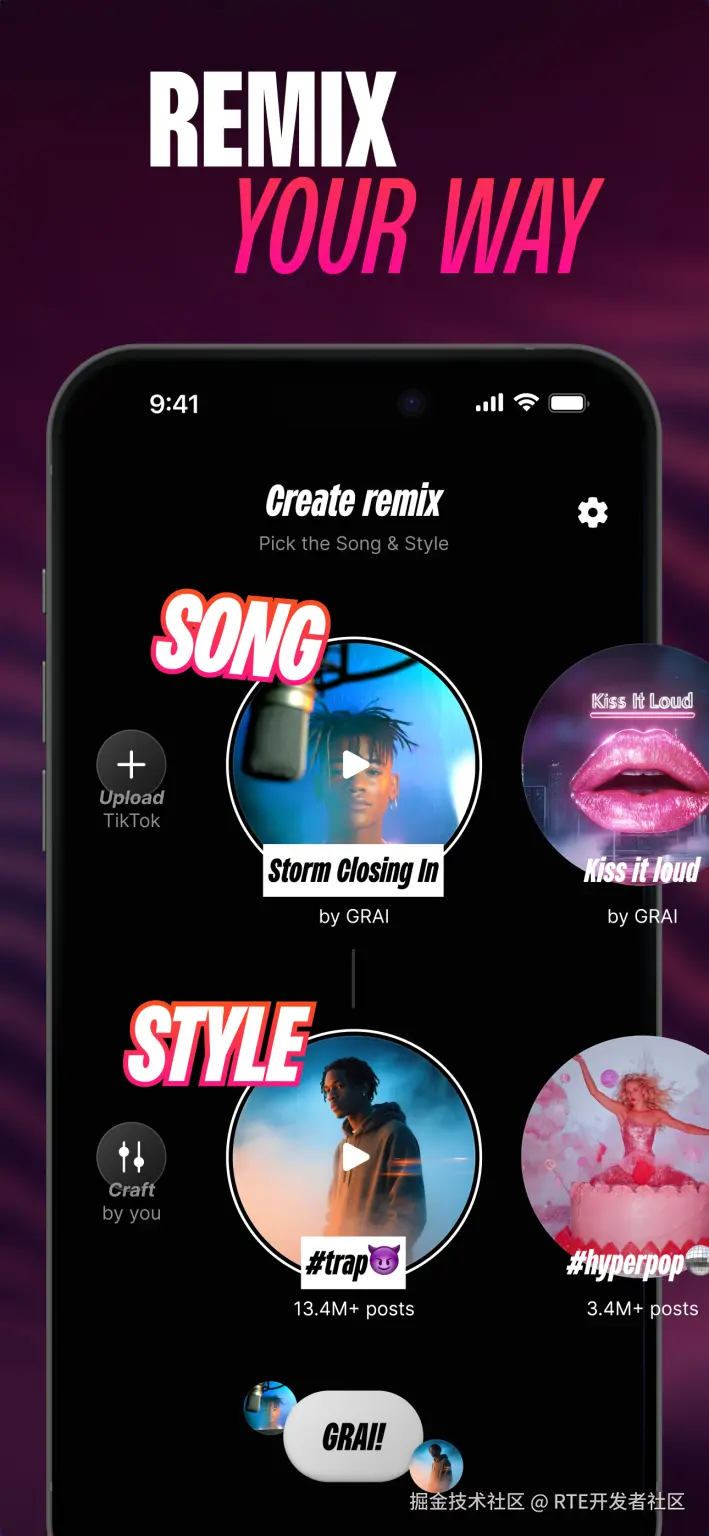 兴趣与参与图谱(Taste and Participation Graph): 针对 Gen Z 与 Gen Alpha 用户,GRAI 建立了一套社交发现机制,通过朋友关系链、粉丝群体和短视频语境(如 TikTok 模式)驱动音乐传播,而非依赖传统的流媒体被动收听。