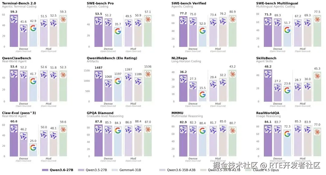 1、Qwen 开源 Qwen3.6-27B:27B 稠密多模态模型,智能体编程能力超越 397B 前代旗舰