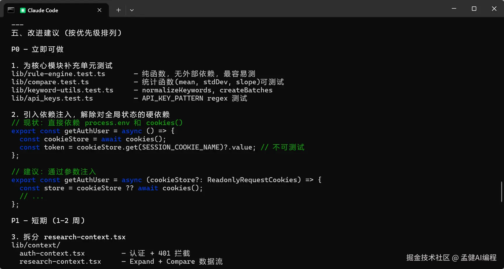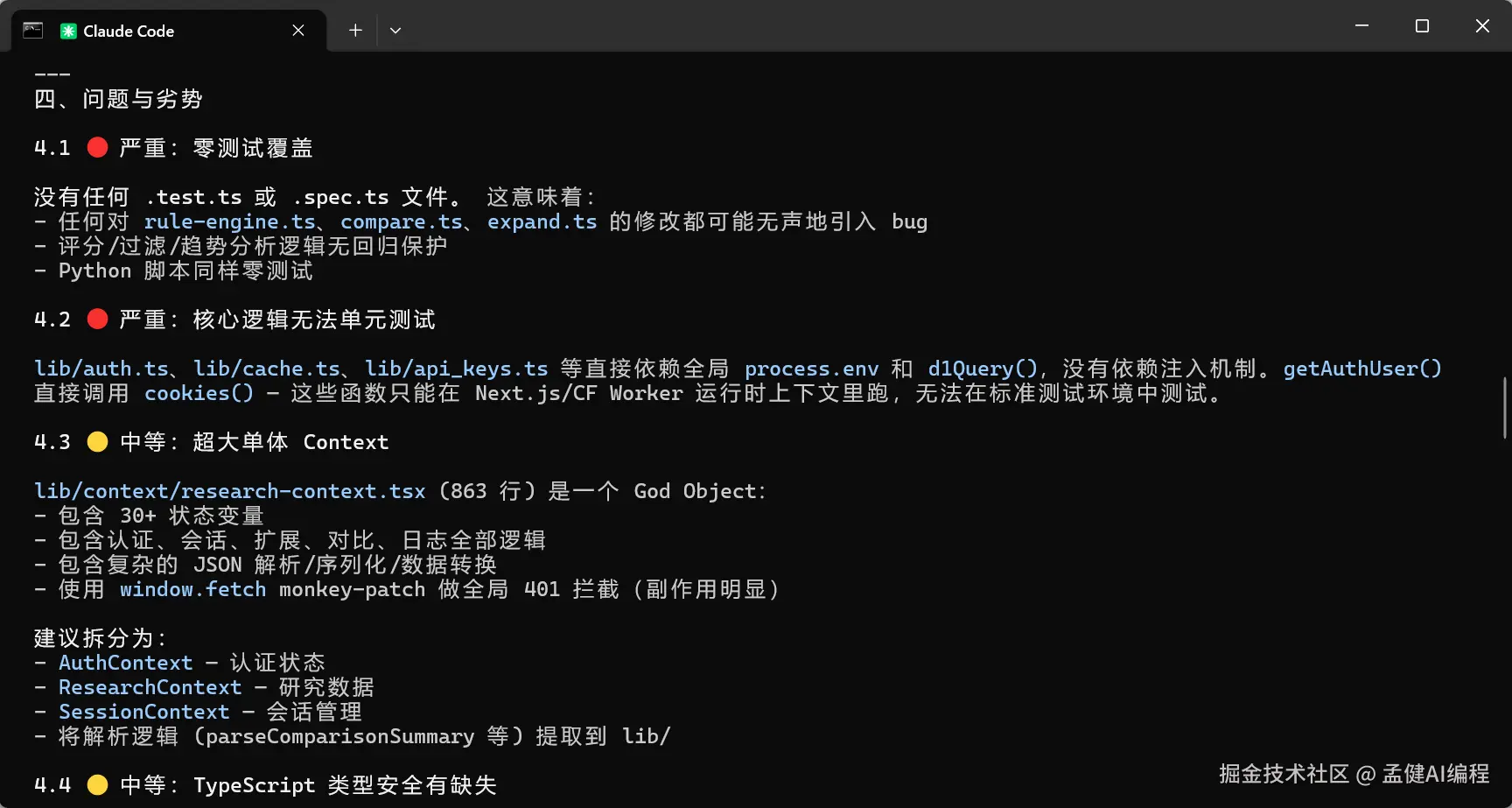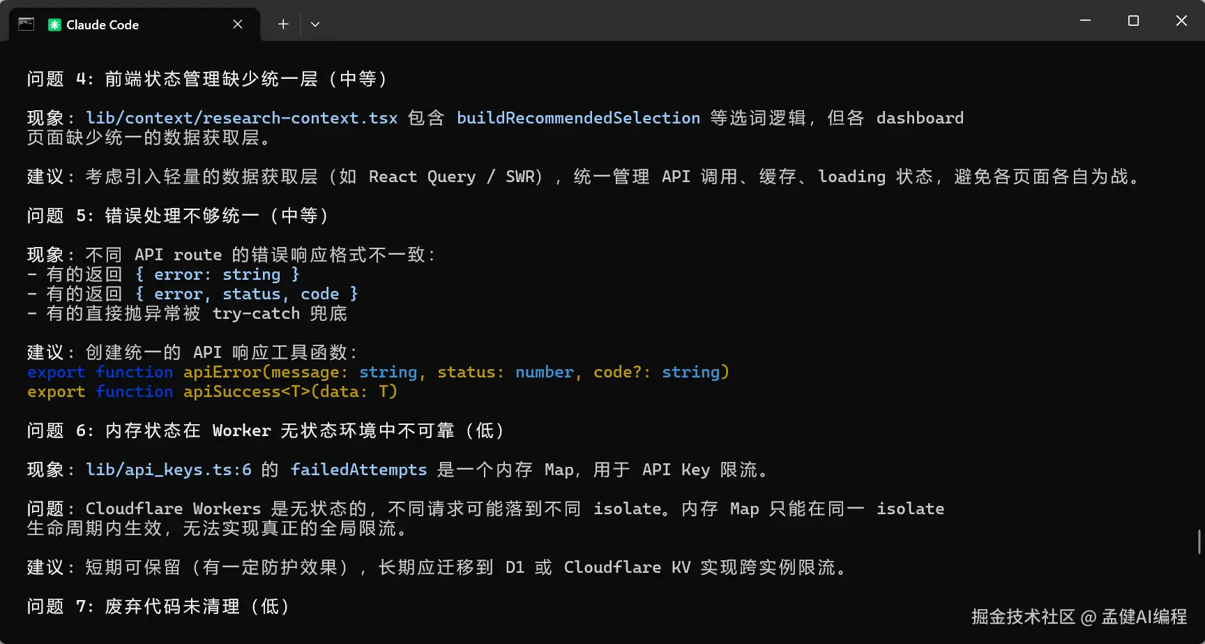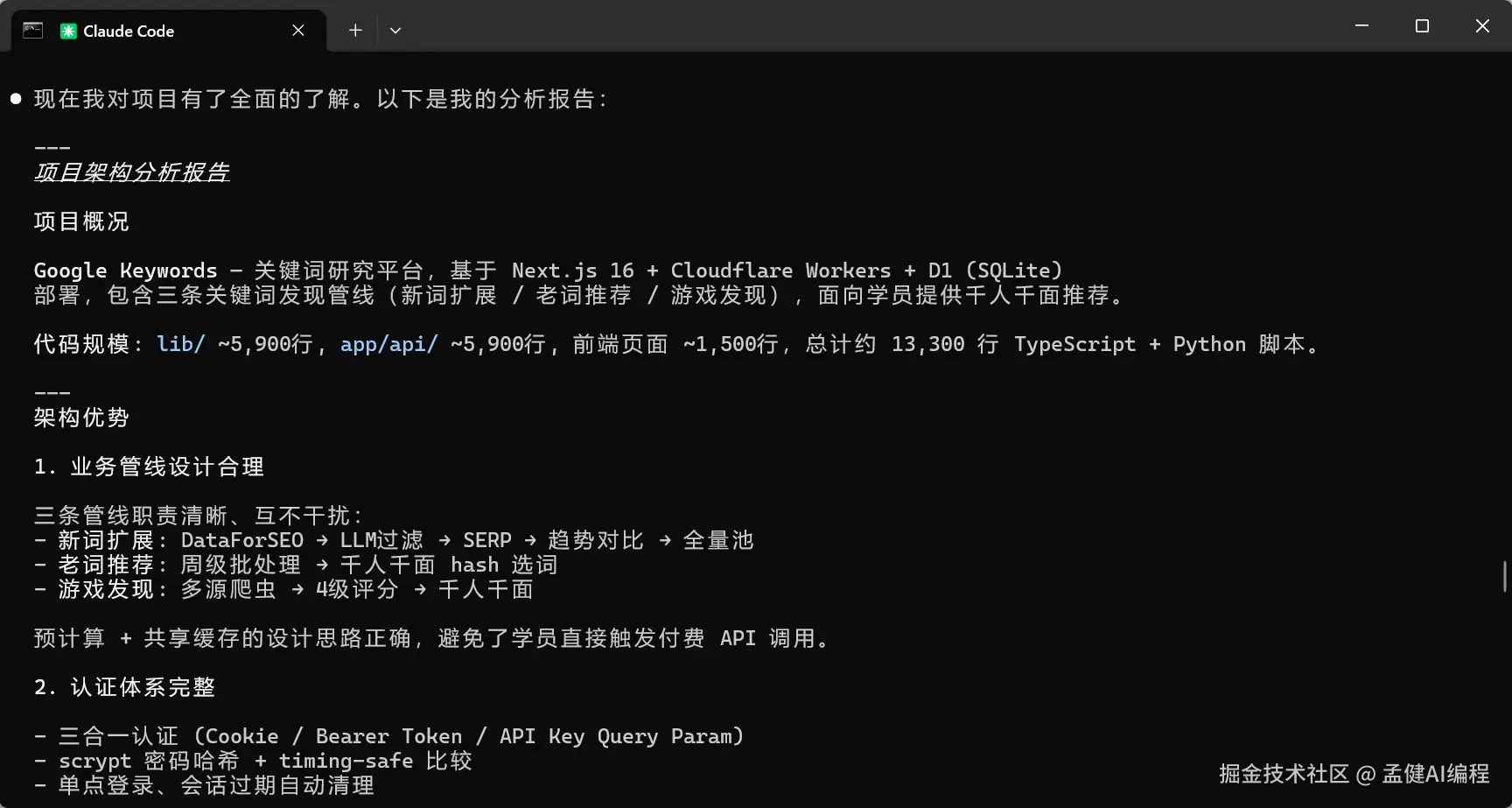 | 项目架构分析 | ⭐⭐⭐⭐⭐ | ⭐⭐⭐⭐ | 分析的更加扎实,给出的建议更加实用 |