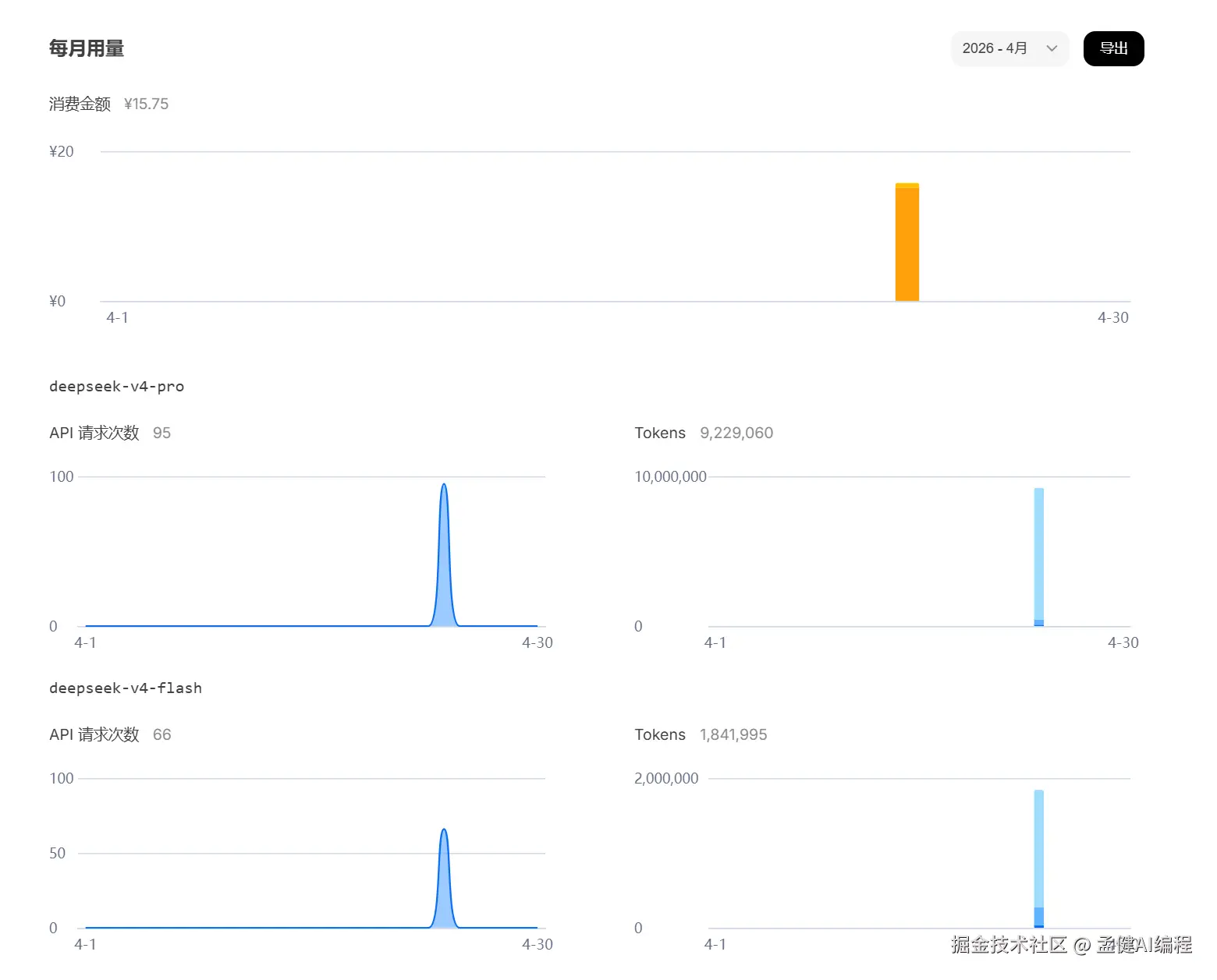 DeepSeek-V4-Pro 目前没有 Coding Plan,所以我是通过API直接接入 Claude Code 进行使用的,今天刚刚充值了100元,上面做了这些工作,花费15.75元。