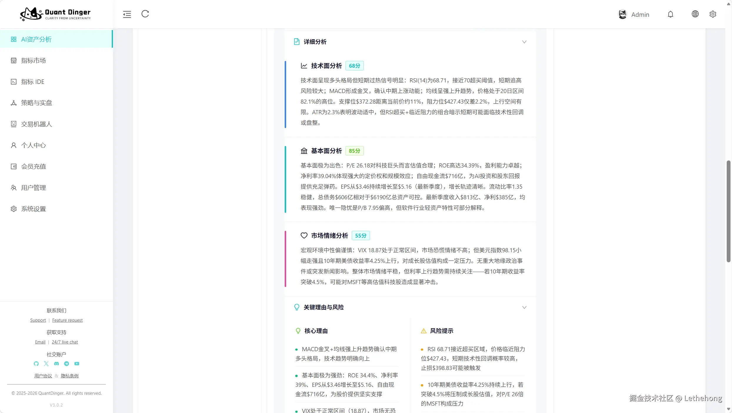看到没有?它不仅懂技术面的 MACD、RSI、布林带,还懂基本面的 ROE、净利率。最可怕的是,它最后还能克制住“看多”的冲动,通过多周期打分给出了“SELL”的客观建议。这种兼顾细节与宏观,且不带人类主观情绪的分析,就是 AI 最大的价值。