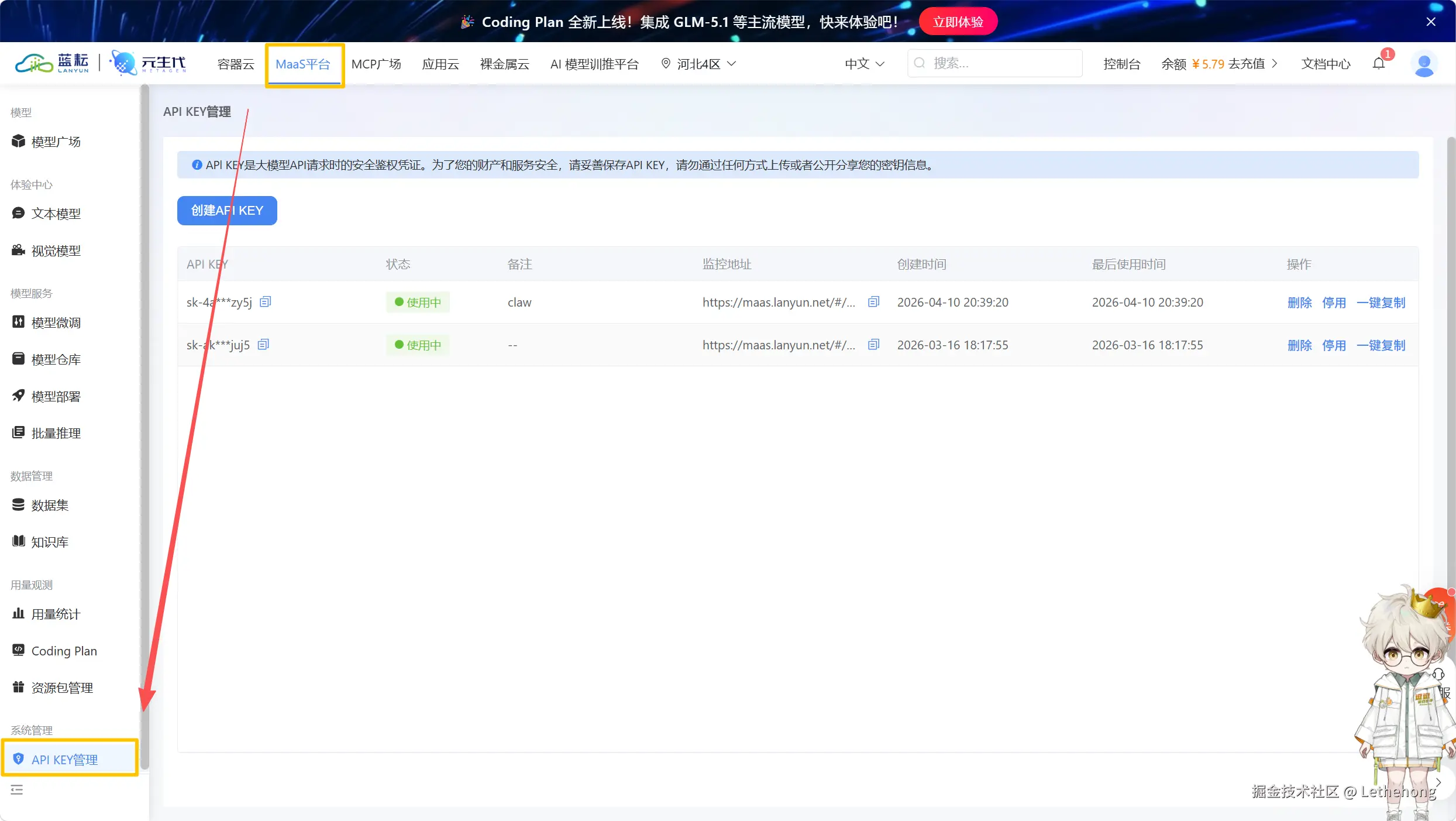 模型名称:填入 /maas/zhipuai/GLM-5.1。