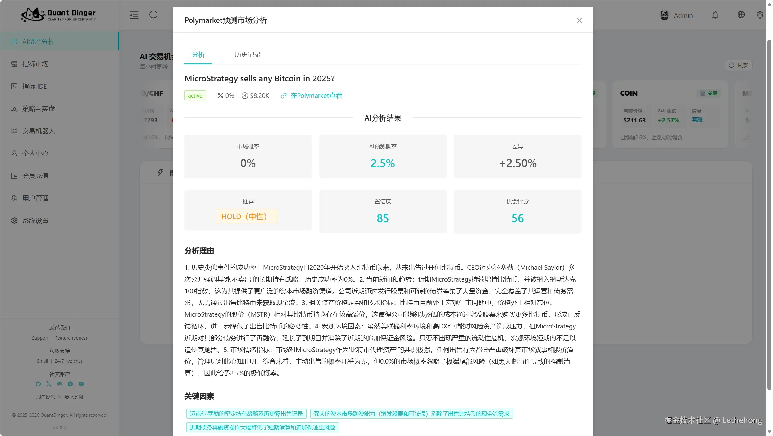 不过这里我要敲个黑板: AI 交易虽然酷炫,但市场是残酷的。量化回测里的“一马平川”,不代表实盘一定能赚钱(因为有滑点、手续费等现实因素)。这个功能适合有经验的玩家去折腾,行外小白千万别轻易拿真金白银去让机器人自动交易!