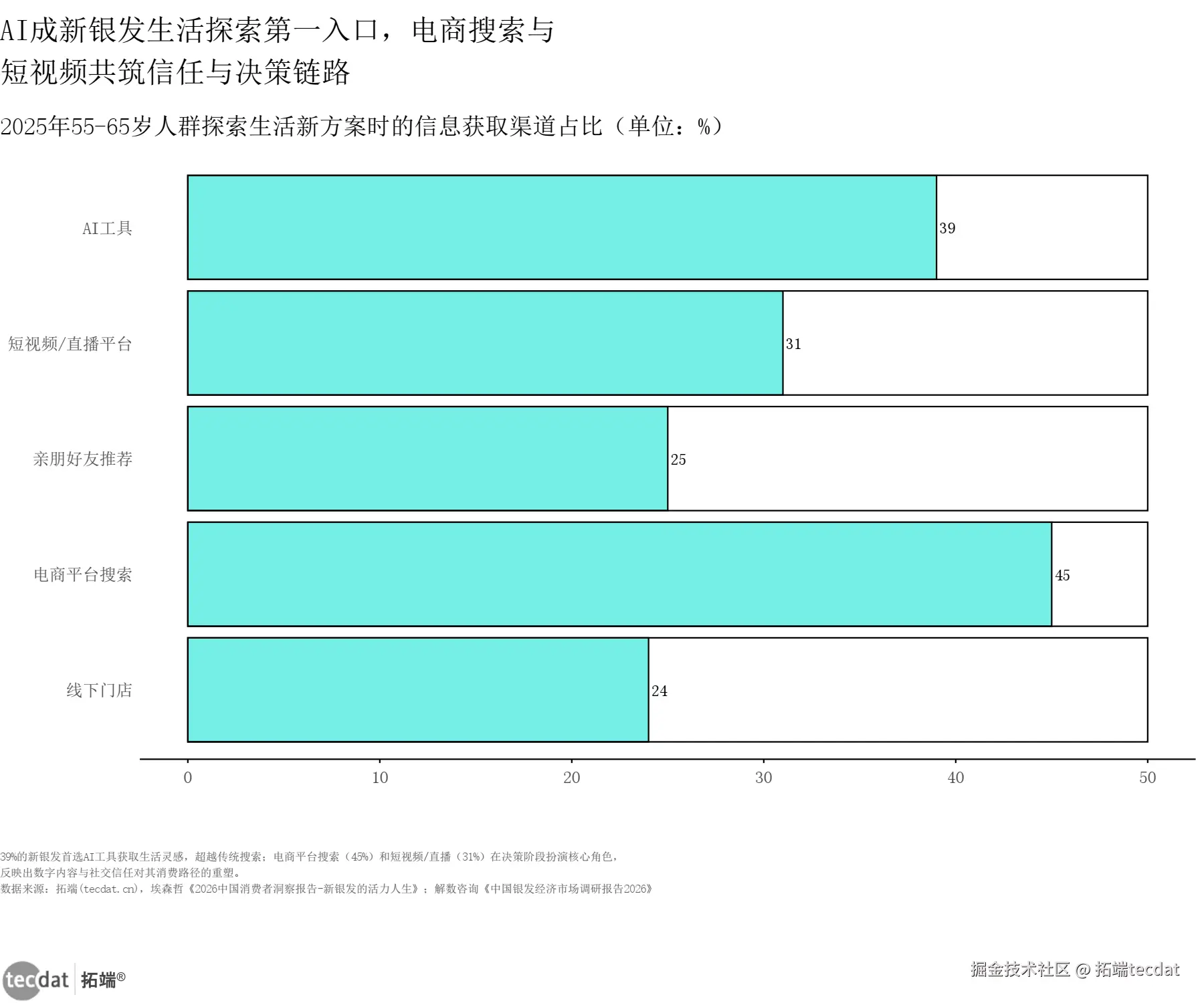 (图5数据表明,39%的新银发首选AI,而短视频/直播、熟人推荐也是其重要信息源)