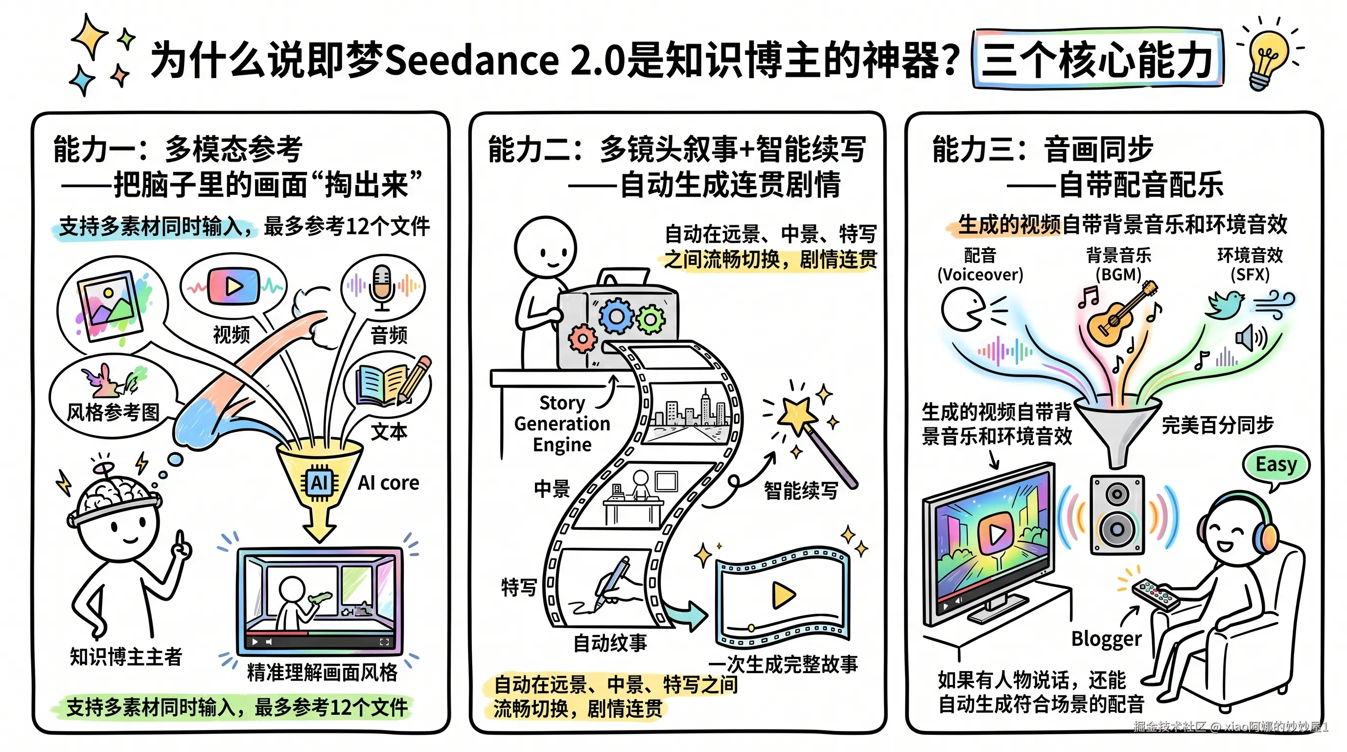 为什么说即梦Seedance 2.0是知识博主的神器?三个核心能力: