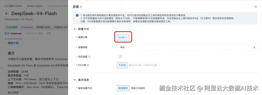 DeepSeek-V4-Flash-FP8: pai.console.aliyun.com/#/quick-sta…