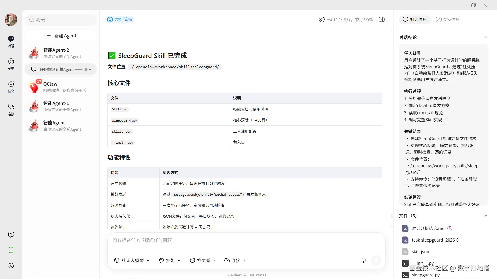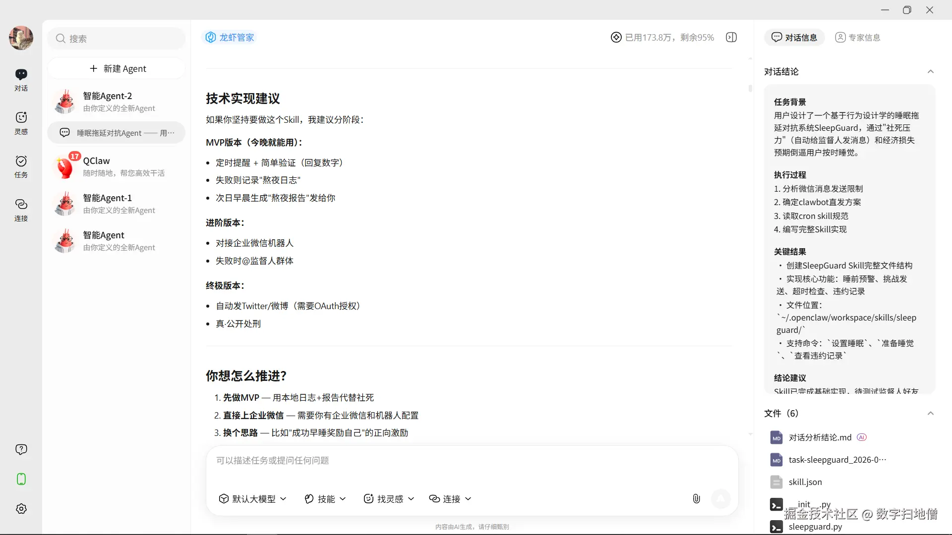 当然,这些"邪修"用法也提醒我们:Agent的伦理边界需要开发者自己把握。SleepGuard的社死机制虽然有效,但如果滥用,可能会对人际关系造成真实伤害。因此我在代码中加入了"每日限额"和"紧急取消"机制——技术应该服务于人,而不是成为社交暴力的工具。