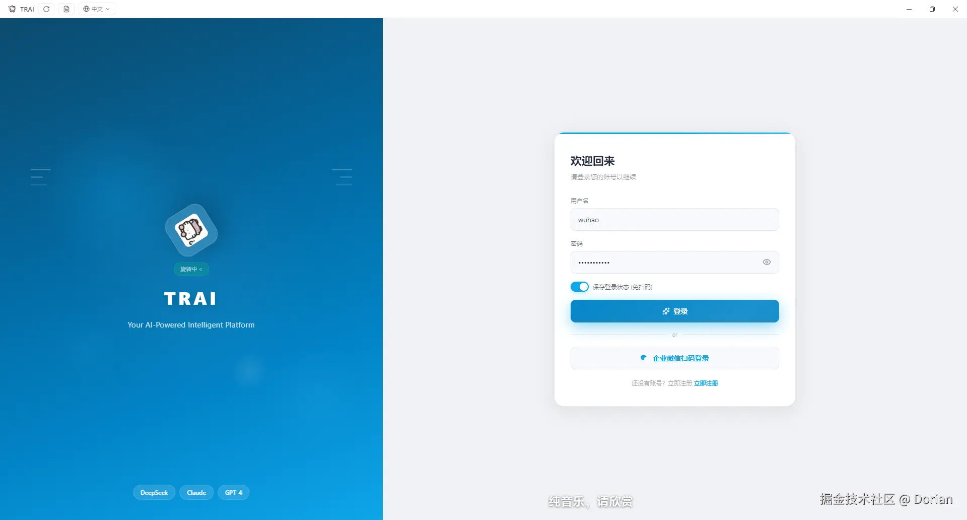 本期一句话: TRAI - AI 智能助手平台 TRAI 网站上线 全面落地 i18n 国际化系统,支持中英双语切换;登录注册页面重构为左右对称全屏布局,引入动态光晕、品牌核心与全方位交互反馈;客户端动画系统升级至 Google Material Design 风格,聊天输入框增强快速命令建议与自适应高度;后端新增翻译管理、图片生成配置、飞书通知、IP地理服务等基础设施。