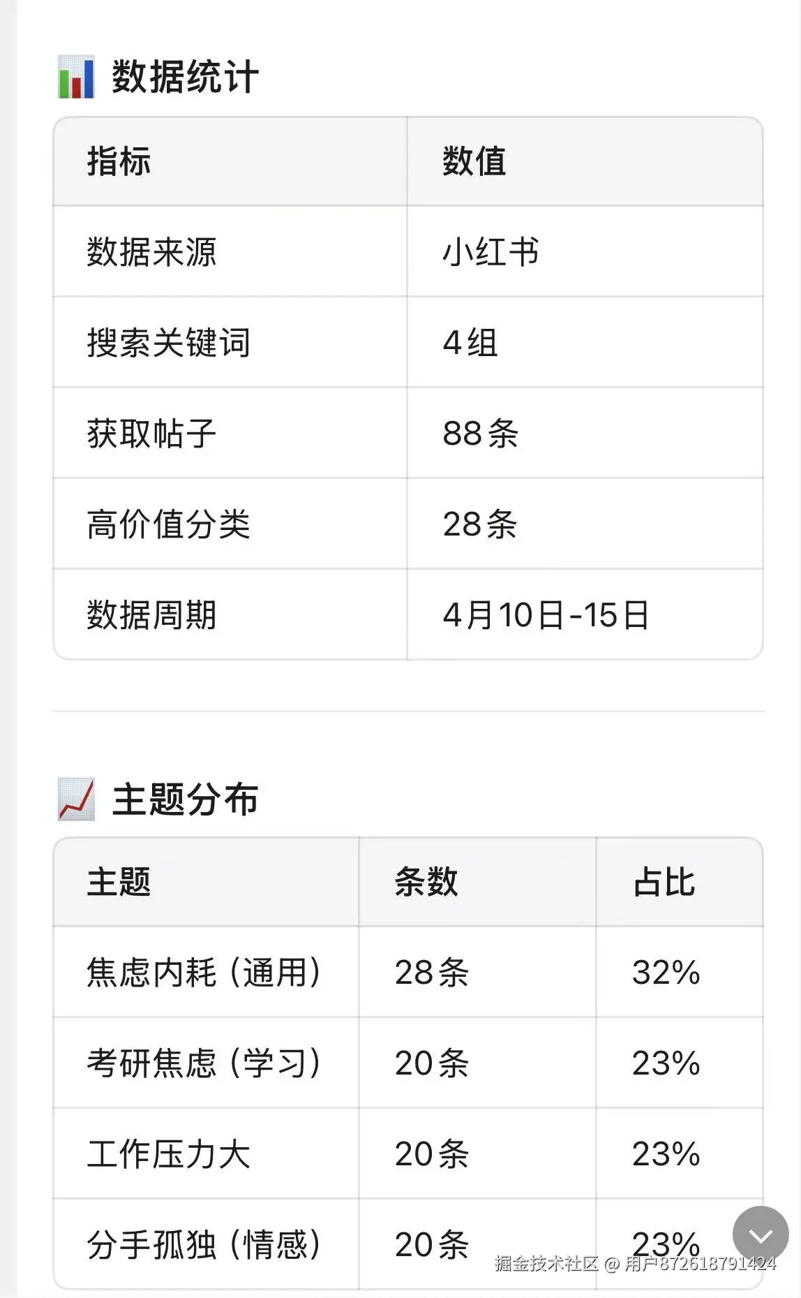- 数据量:88 条真实帖子(4月10日-15日)