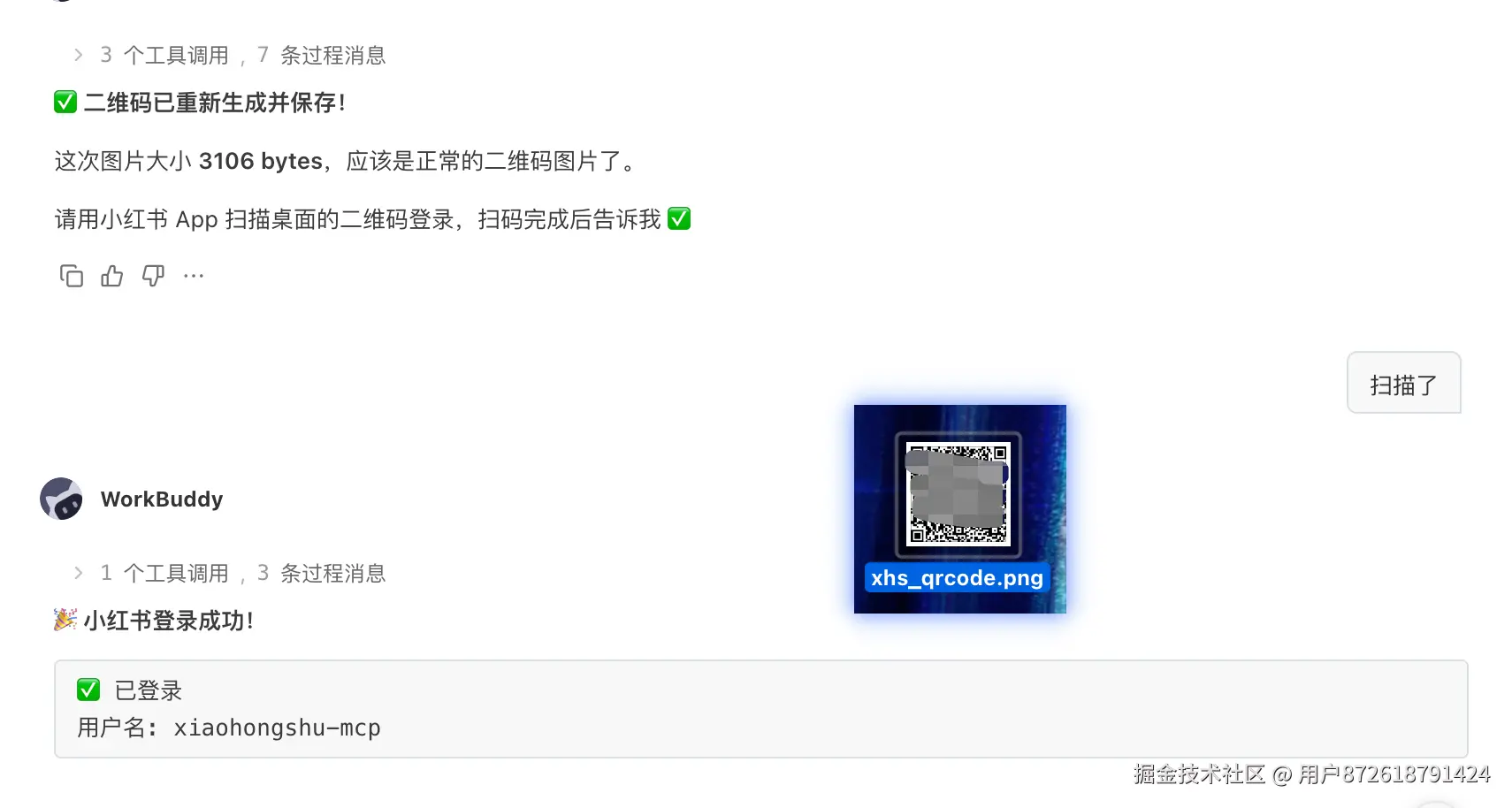 安装完成后,需要用小红书 App 扫码授权登录: