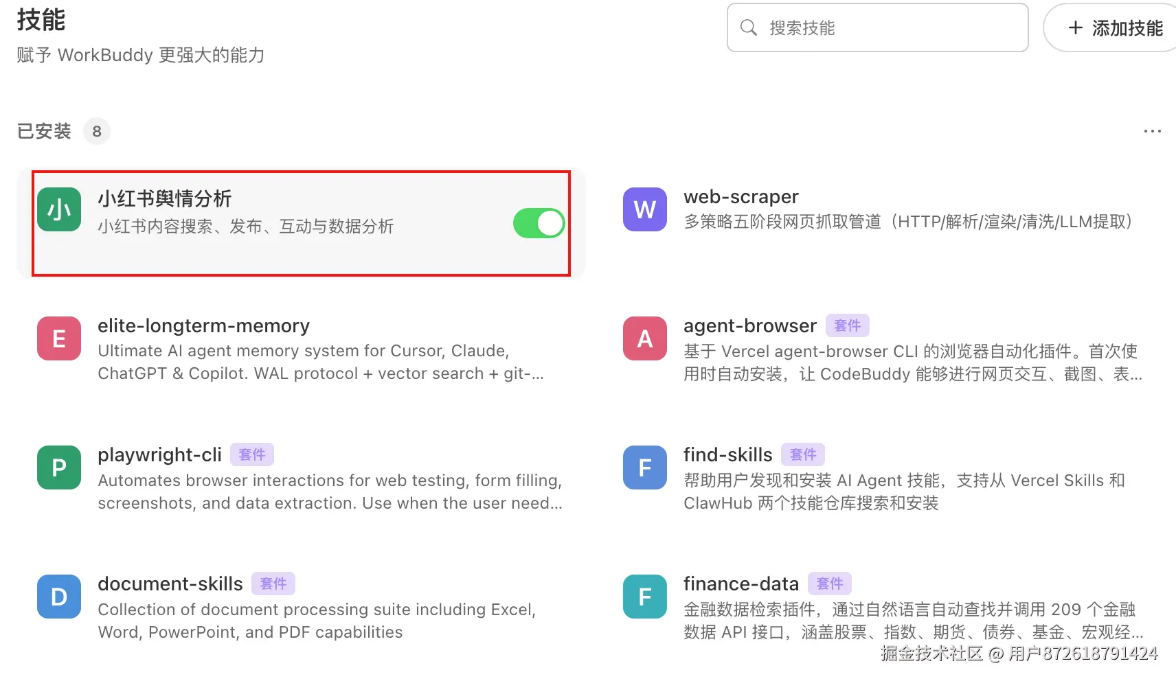 WorkBuddy 的能力扩展依赖 Skill(技能) 生态。